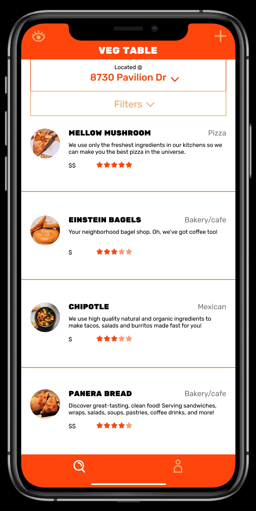 VEG TABLE is a crowdsourced catalogue for people following a vegan or plant-based diet and those who support them. Providing hangry explorers peace of mind when eating out- this app is meant to bring ease and simplicity into mealtimes. Features include entirely vegan restaurant item options, accurate map of locations and offerings nearest you, the ability to add, edit, rate and comment towards restaurant listings, and the social aspect of eating with connecting or sharing to friends through messages and creating accounts in-app. VEG TABLE’s point of difference is through providing specific dishes, plates, and how-to-order menu items with the ability to filter by item or restaurant type to truly bring those cravings into a reality.